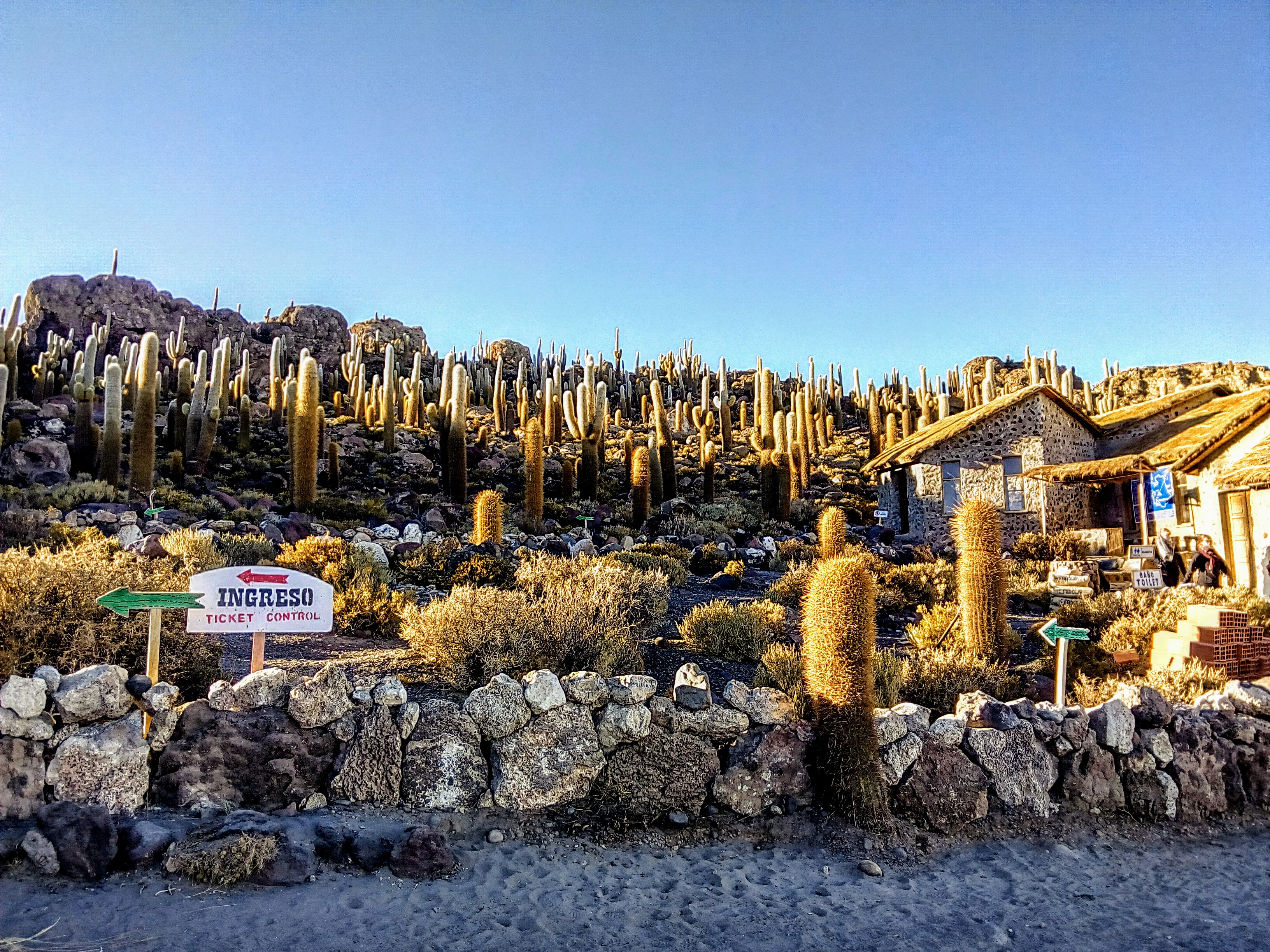 ¿Qué puede haber en medio de tan enorme, impactante y remoto salar? Pues algo más singular aún: una isla… de cactus. Allí, en la Isla Incahuasi, paramos a desayunar el último día de ruta, antes de dar una vuelta por el recorrido marcado y pautado de la colina, que entre cactus y suculentas te va regalando vistas imposibles del salar y sus alrededores. Una dosis de surrealismo extra.