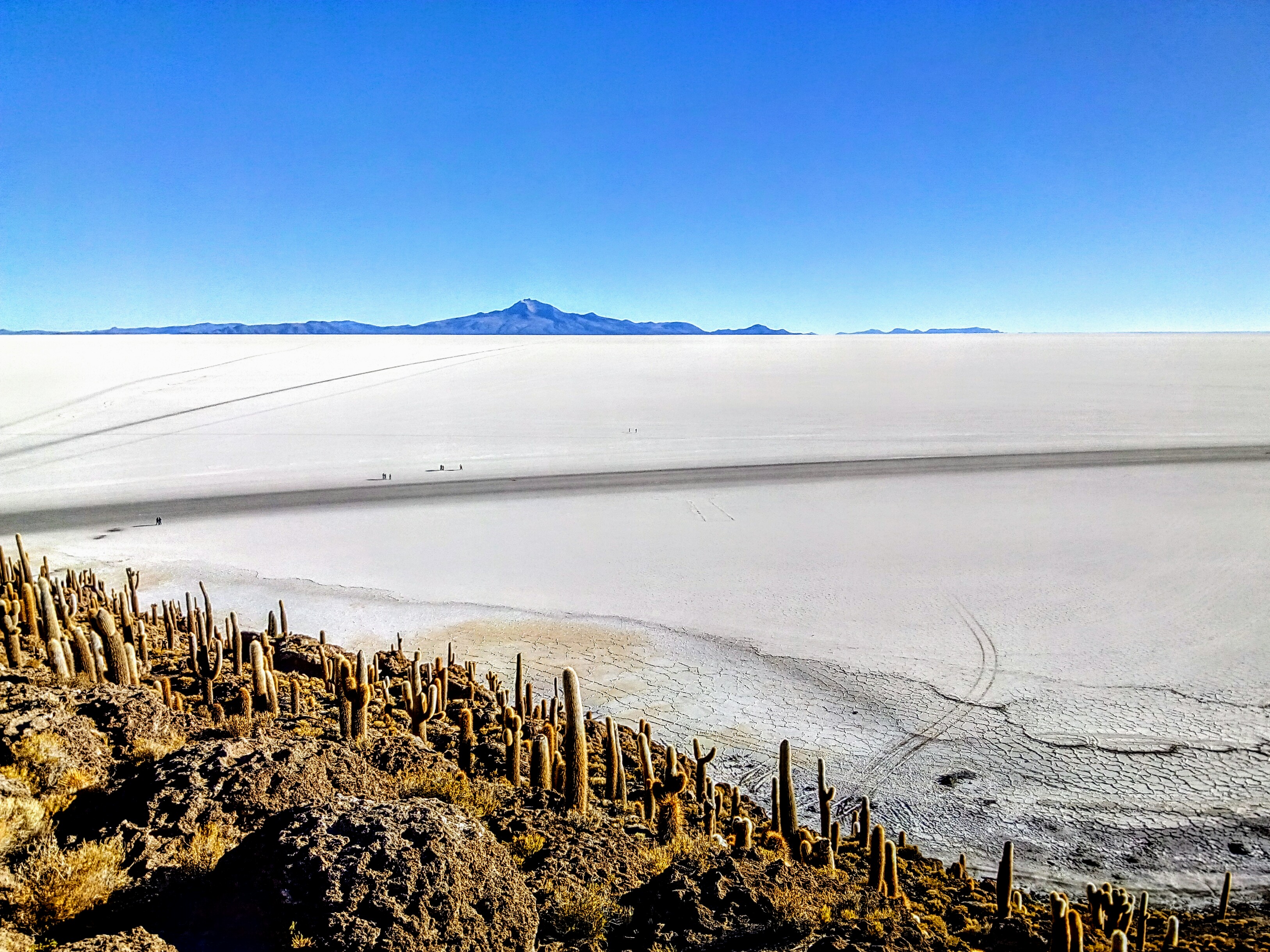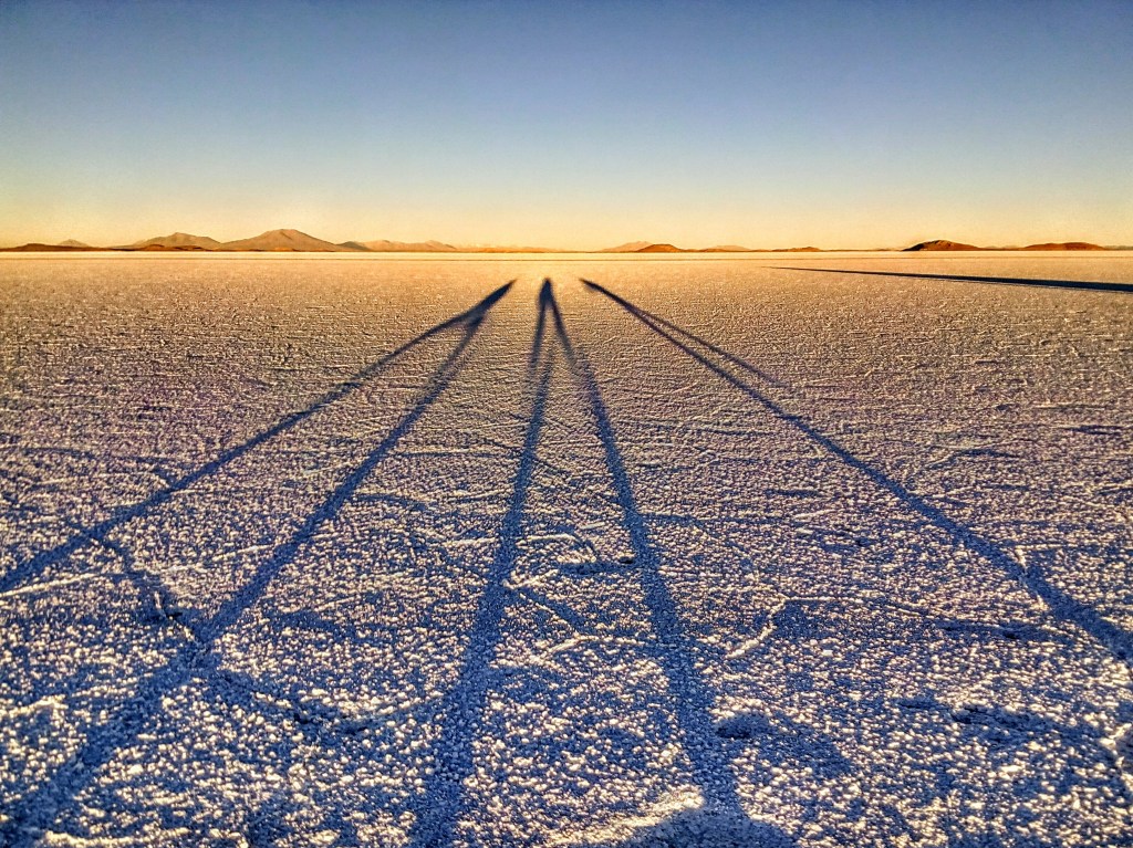 Capítulo a parte merece el salar de Uyuni –por supuesto–, que es inabarcablemente extenso. Tiene el tamaño del Líbano o Catar, y ocupa un tercio de lo que mide Catalunya. Es una especie de plató de televisión inconmensurablemente plano e inmenso en cuyo medio única y exclusivamente ves dos colores: el blanco de la sal y el azul del cielo.