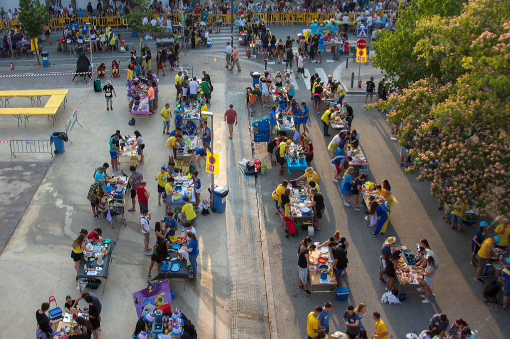 800 participantes y un millar largo de personas revoloteando por el público le dan forma y colores —mayoritarimente azul y amarillo, como los símbolos locales— a un evento que, en proporción y comparando la escala canovellense con la de Barcelona, aglutinaría en la capital catalana a la capacidad de dos Camp Nous.