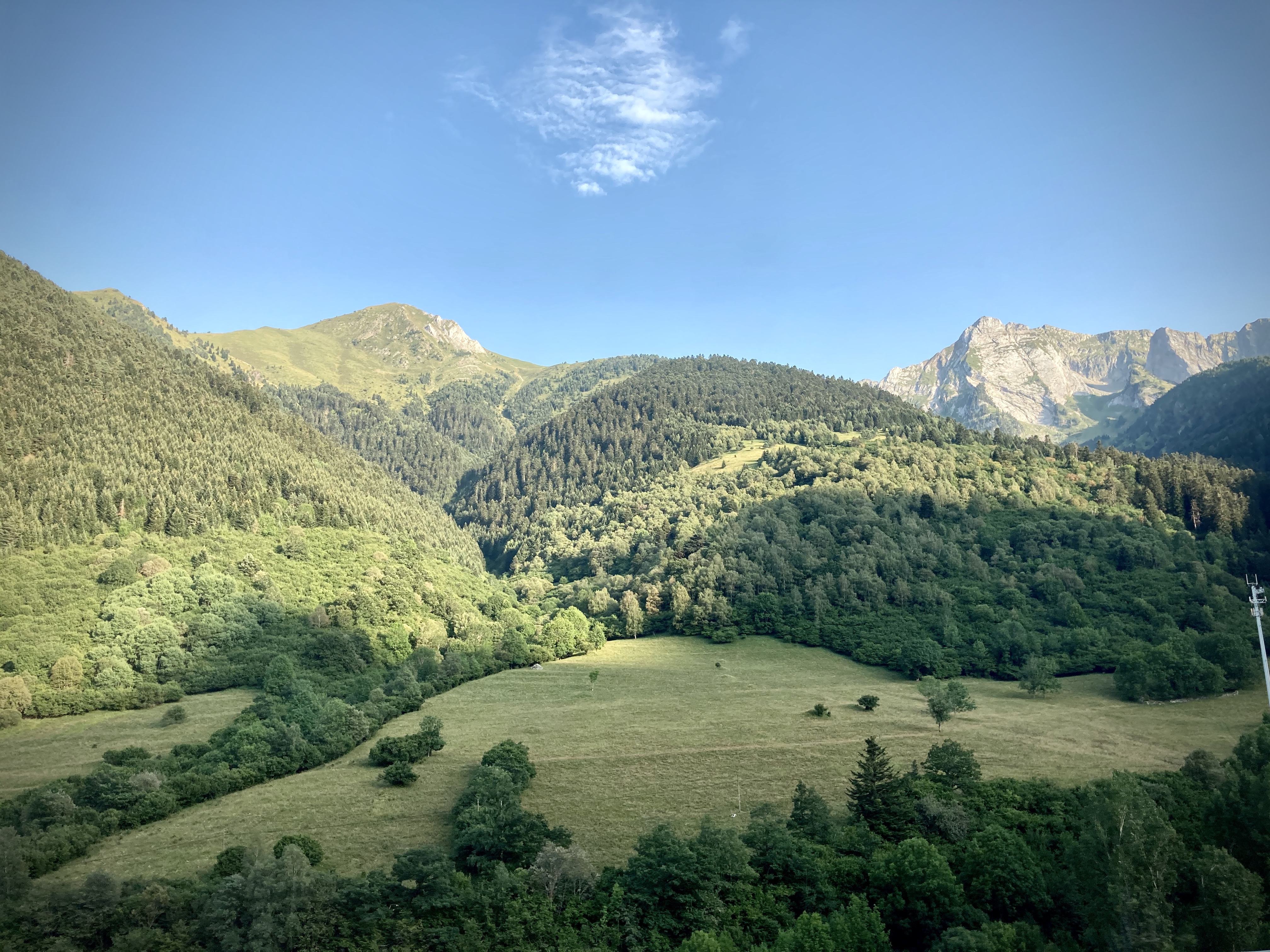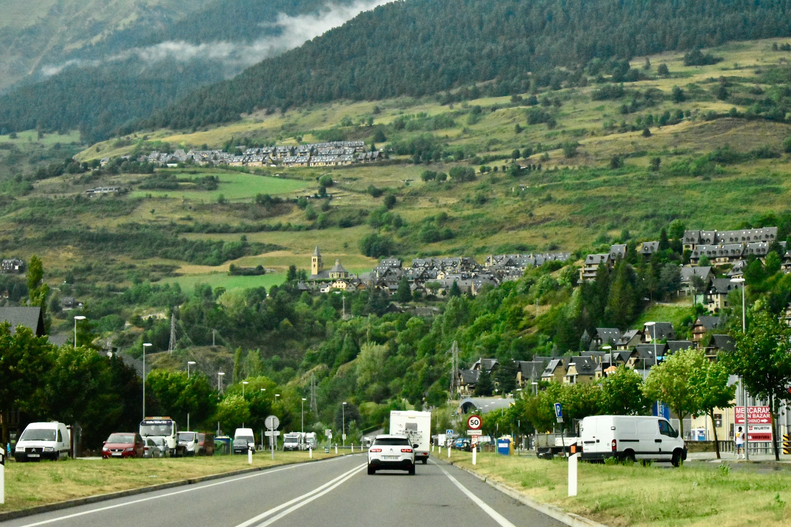 Nada más salir del túnel de Vielha, toda la fuerza y el esplendor de la Val d’Aran se abren ante tus ojos como un paraguas enorme: abetos verdísimos cuelgan por las laderas escarpadas de las montañas –altísimas– entre las que, desperdigados, sobresalen los campanarios del valle. Un preludio inmejorable.