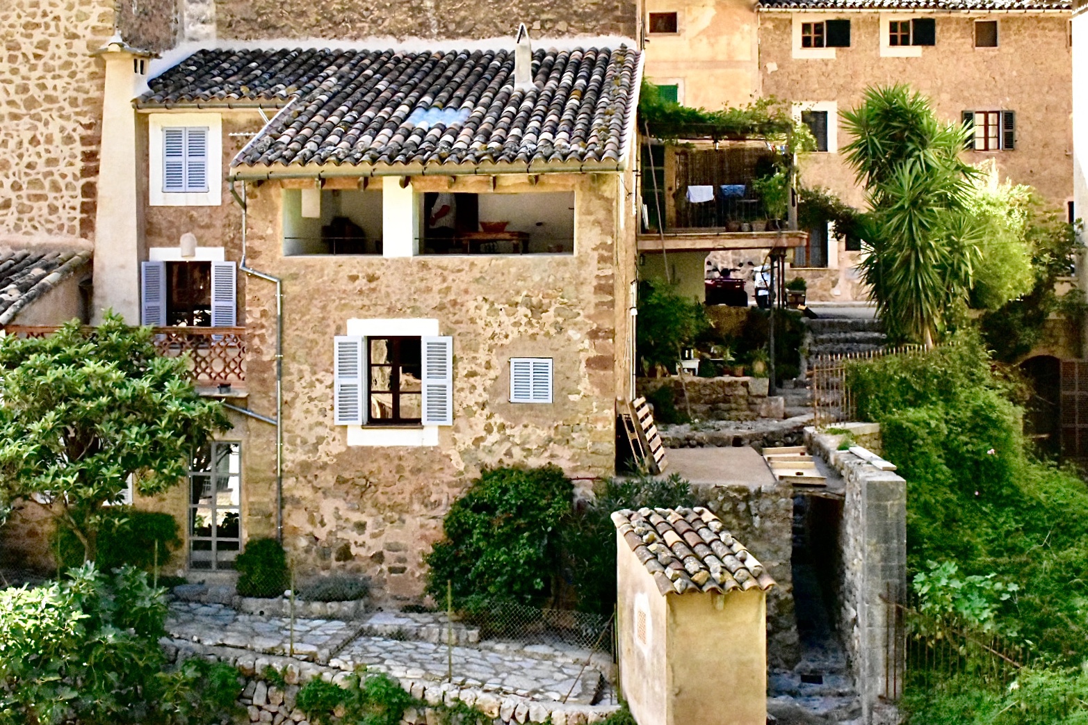 De nuevo las casas de piedra parecen en Deià colocadas estratégicamente para quedar bien. Los accidentados barrancos y terrazas sobre los que se asienta el pueblo –además de complicar la tarea de estacionar un coche– suponen cientos de oportunidades privilegiadas para otear el entorno, repasar con la mirada una trama urbana que se extiende hacia arriba y hacia abajo y pararse a distinguir las palmeras y los olivos que sobresalen, con el mar de telón de fondo.