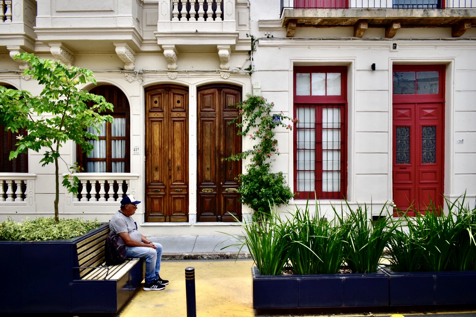 Sí vale la pena, al contrario, adentrarse en este barrio montevideano con el ojo bien descansado: para embelesarse con el festival de fachadas que atesora —casonas de la época colonial, palacetes art nouveau, edificios art déco—, testimonio pétreo de su importancia histórica y vitalidad; para descubrir la mirada de Galeano aguardando tras un grafiti en una esquina cualquiera; para detenerse ante puertas de una madera tan antigua como la propia República Oriental del Uruguay.