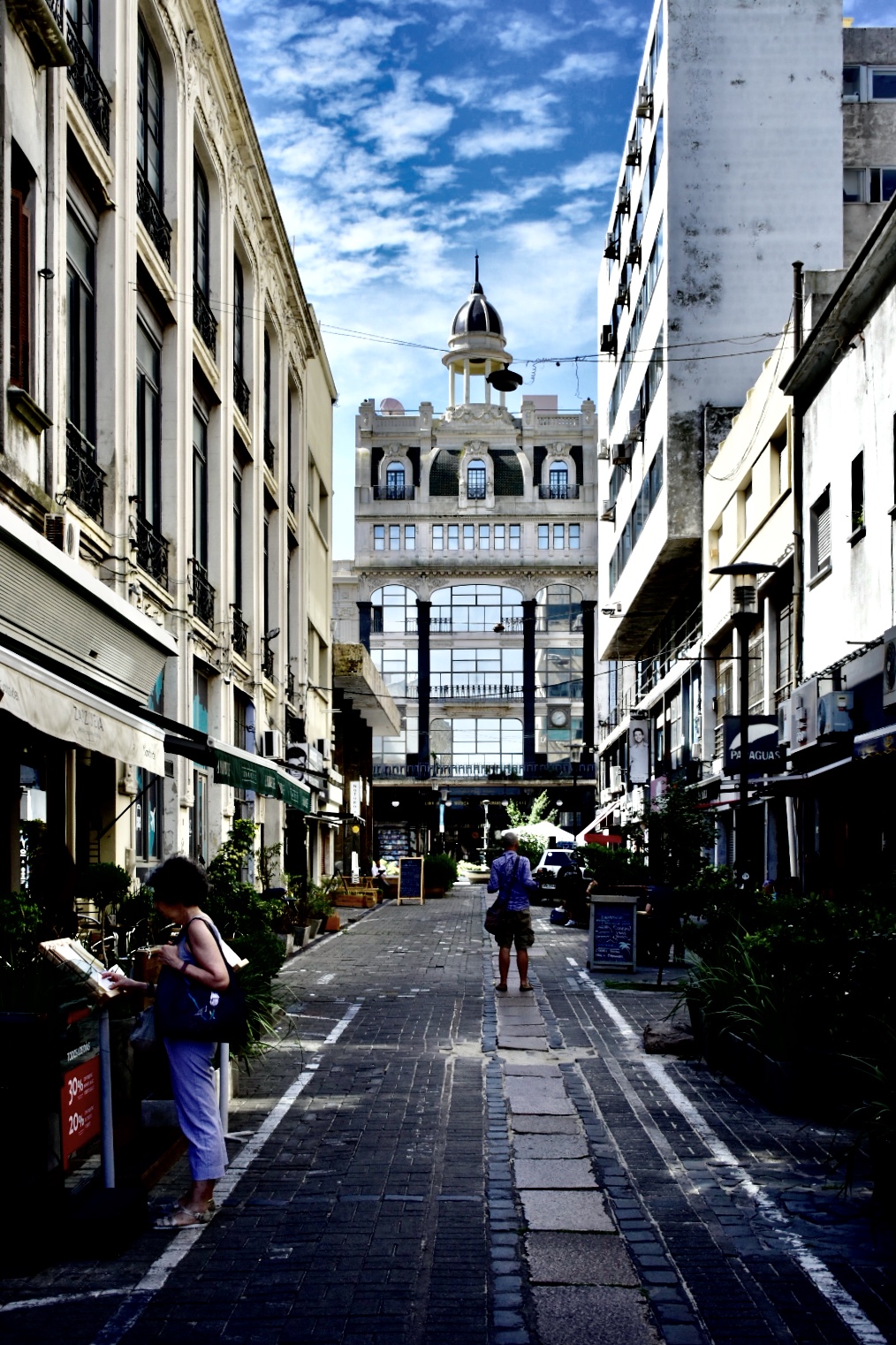 Si uno cruza la susodicha Puerta de la Ciudadela, aparece frente a la peatonal Sarandí, la camiable espina dorsal de la Ciudad Vieja. Un desfiladero amable de transeúntes, oficinistas apresurados (pero no tanto), funcionarios, turistas, deambulantes y vendedores ambulantes que disecciona una muestra física del centro antiguo de Montevideo.