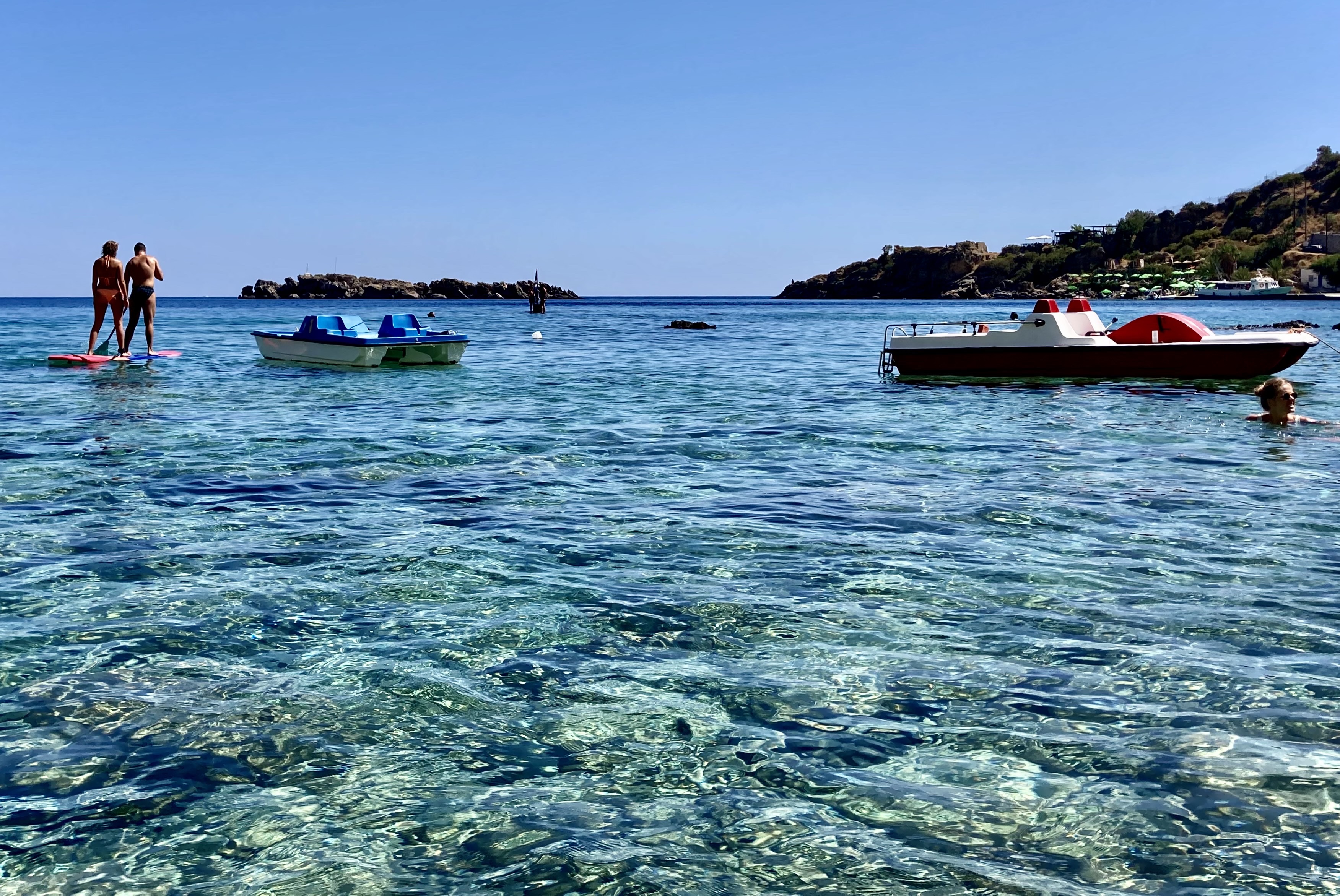 Ha llovido mucho desde entonces, pero no lo suficiente para evitar que el sirtaki se convierta en el cliché musical más icónico de Grecia. Una danza que —volviendo al lugar que nos atañe— podrías bailar en remojo en las aguas de Stavros: son una piscina plácida, translúcida y relajada, rodeada de un paisaje casi lunar, y donde te verás los pies mientras dances felizmente.