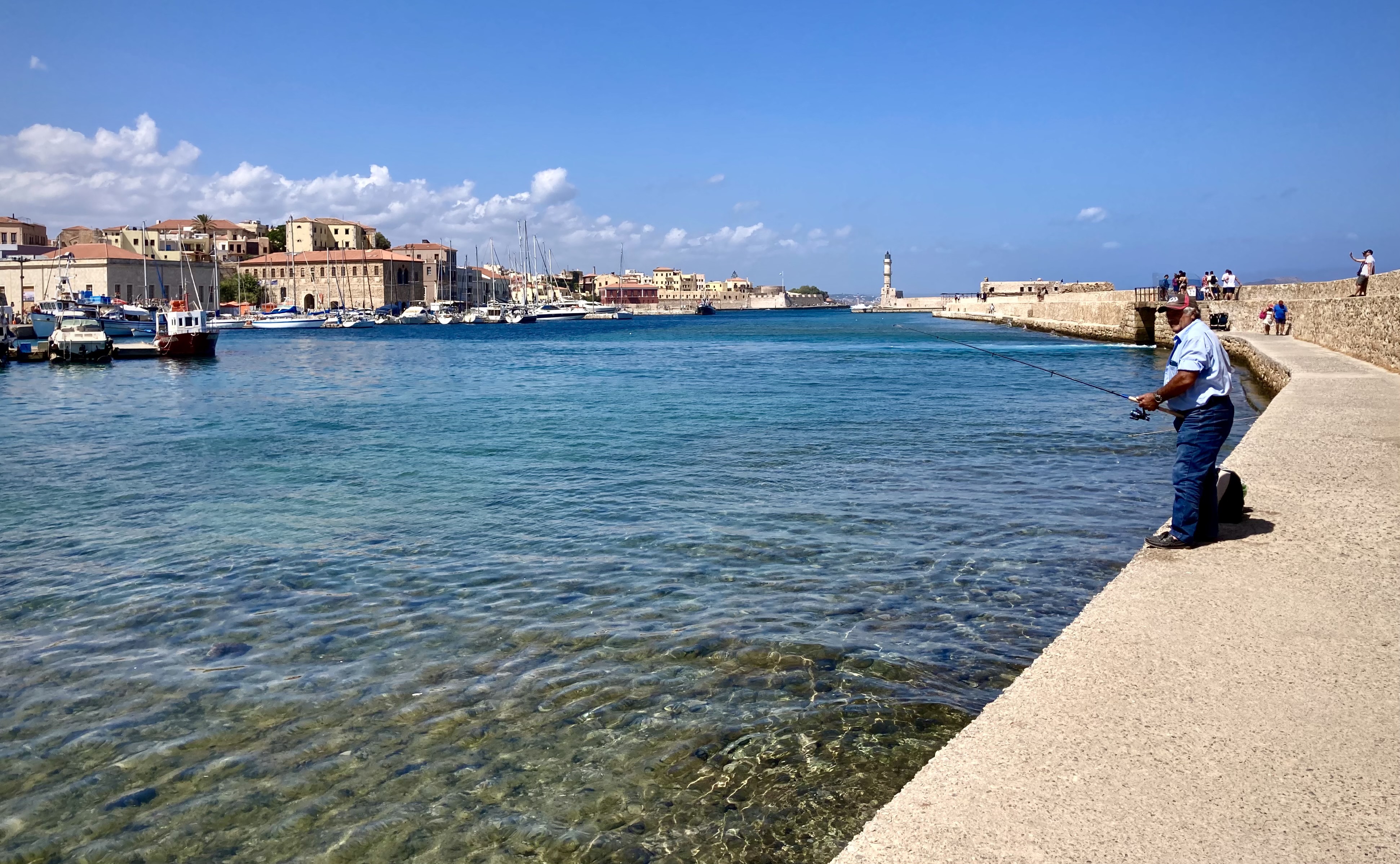 Pese a todos los vaivenes históricos, el agua del puerto veneciano de La Canea sigue intacta, limpísima, transparente y tranquila, viendo los siglos pasar. Sorprende que un puerto urbano tenga un agua tan cristalina, a través de la cual, incluso de noche, puedes ver todo cuanto hay en el fondo.