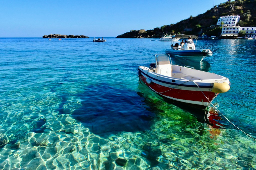 La estampa de Loutró es hedonismo puro: una única fila de edificios blanquísimos —casi todos ellos ocupados por restaurantes y hoteles amables— queda enmarcada entre los montes que los sustentan y el borde turquesa radioactivo y rabiosamente transparente que el mar asume en este punto de Creta, poblado de barquitas y nadadores felices. Y regado por un sol que lo magnifica todo —azules incluidos—.