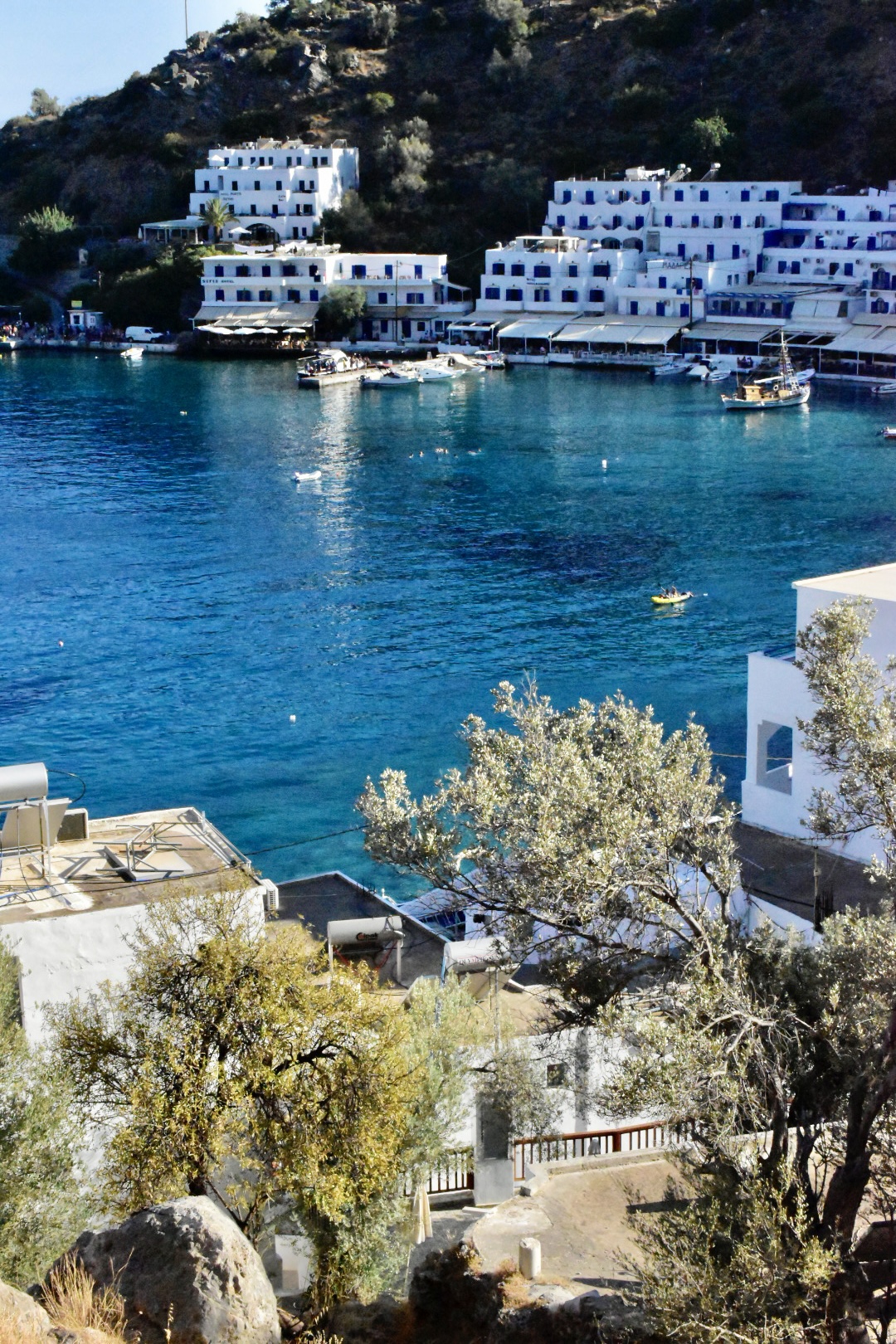 Como decía, también se puede llegar a Loutró a pie, desde la garganta de Samaria, pero el sol inclemente del verano griego convierte esa opción en una temeridad. Y esto iba de ser felices y hedonistas, ¿no?