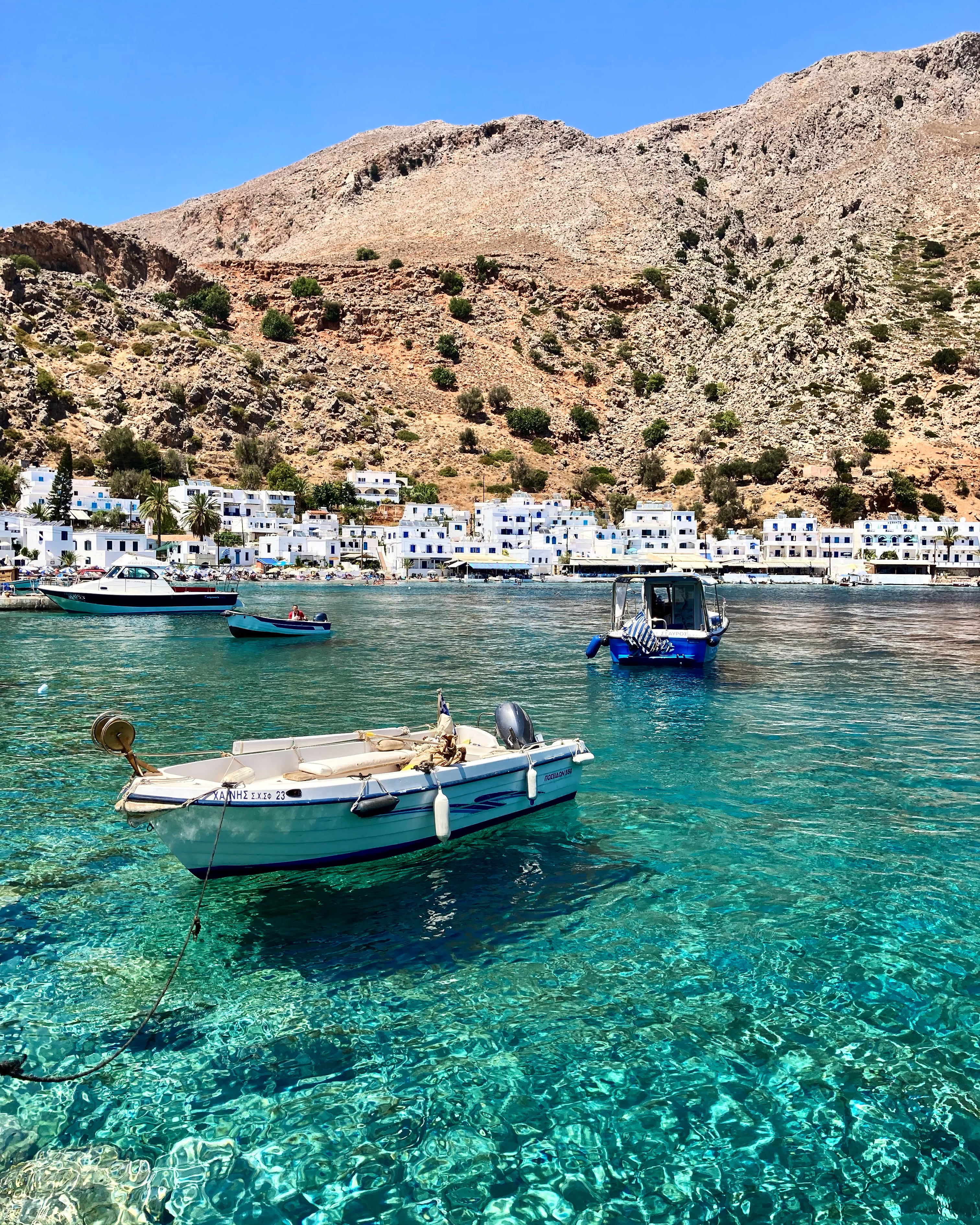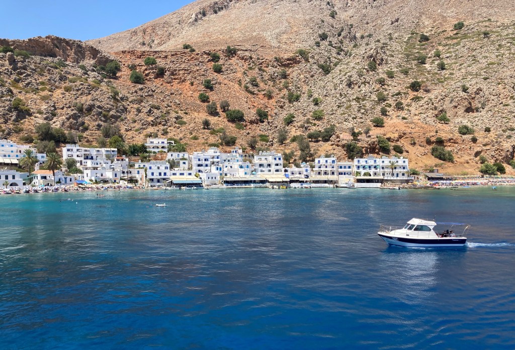 Ya en Hora Sfakión es fácil embarcarse hasta Loutró. En verano, al borde de un azul claro y feliz, el pequeño puerto del pueblo dispara barcos cada hora hacia el paraíso que nos ocupa.