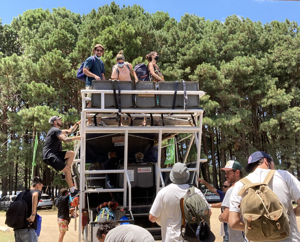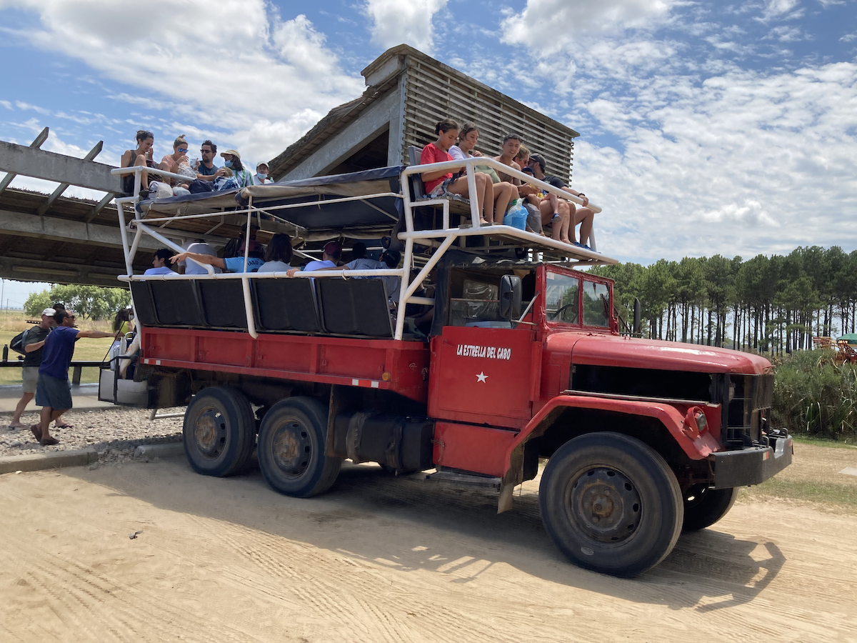 Allí, a la entrada del Parque Nacional del Cabo Polonio, dejas tu coche para embarcar en el único vehículo autorizado a adentrarse hacia la costa: el camión francés. Hoy ya no es ni francés —ya volveremos a ello más tarde— ni tampoco uno solo, pero sí sigue siendo camión. Adaptado a su hábitat, claro.