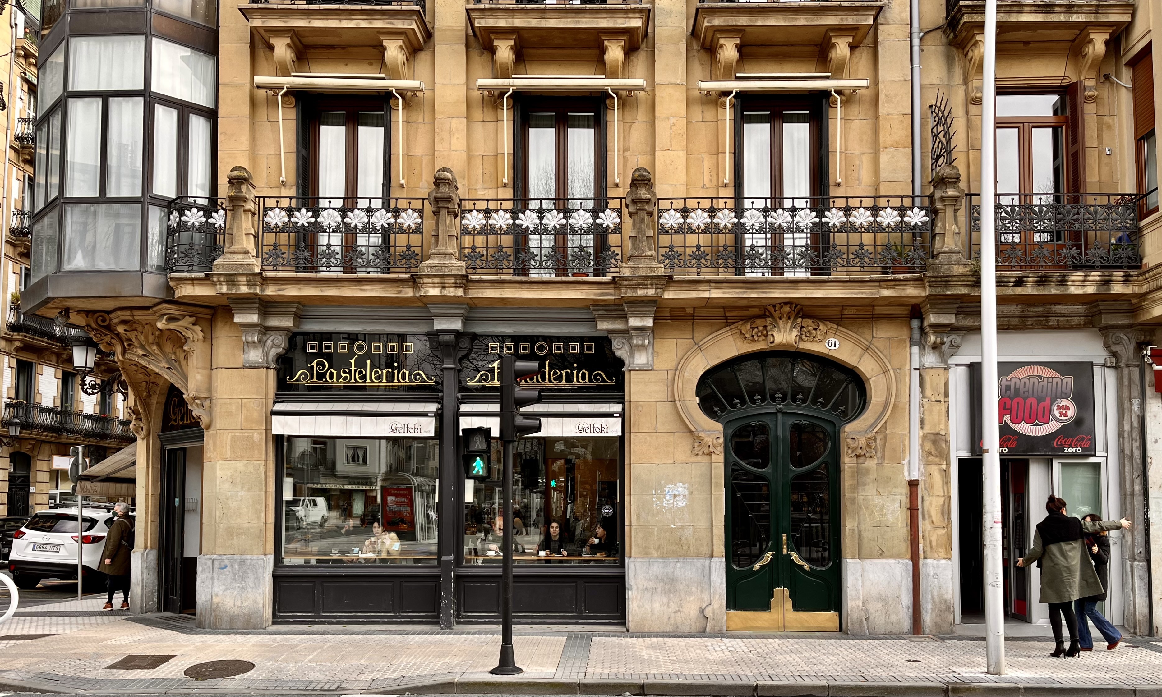 Deshaciendo camino hacia el centro nos encontramos, enfrentada al Casco Viejo, una trama de calles rectas y elegantes, edificios deliciosamente decorados y de un color ocre característico y omnipresente. Es el ensanche Cortázar: del mismo modo que Barcelona tuvo que abrirse a mi Eixample querido, Donostia se vio obligada, una vez recuperada de su mayor incendio y ya convertida en imán de la aristocracia europea, a derribar sus murallas y ampliar la ciudad hacia el sur.