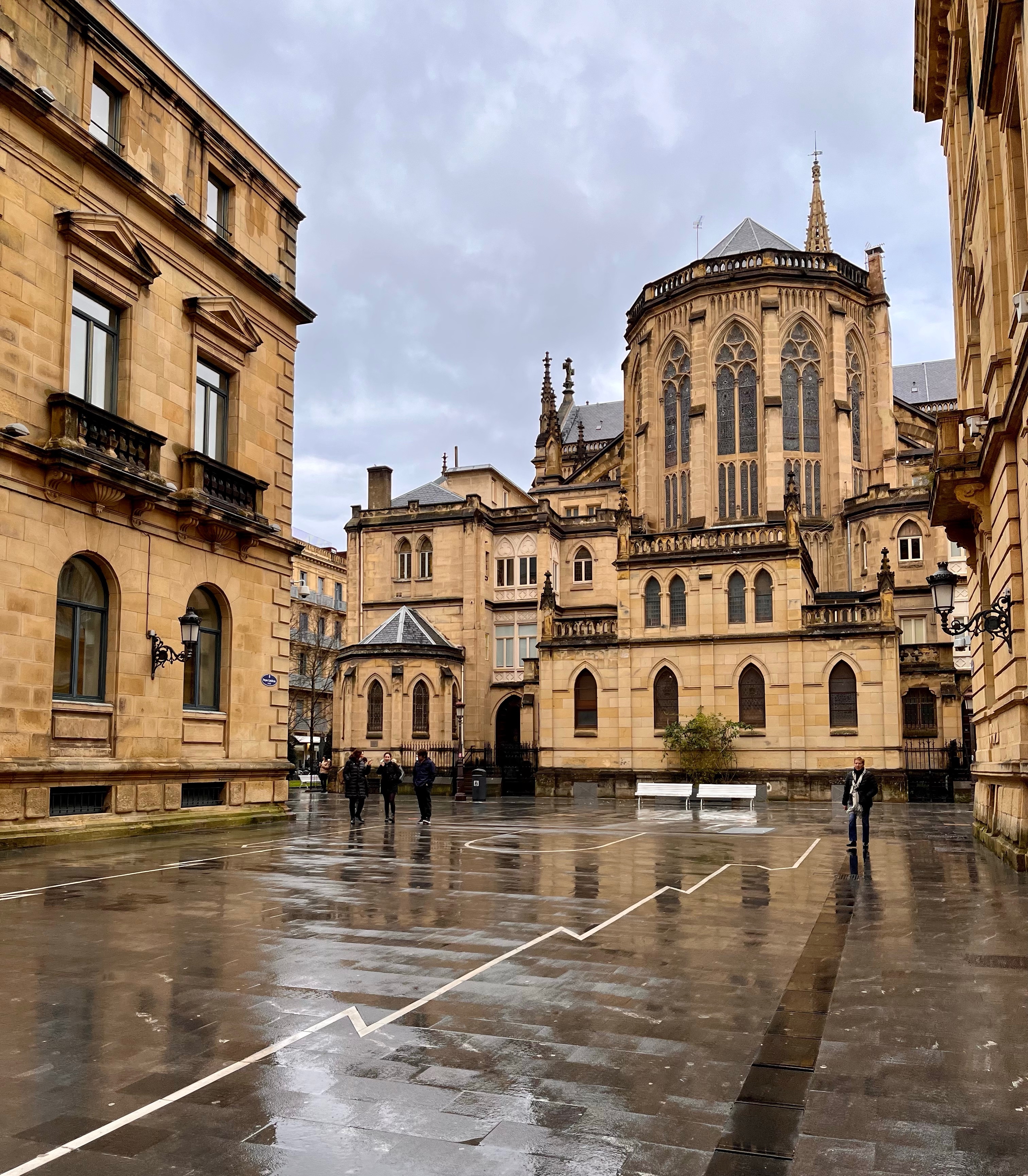 Ya desde el siglo XII, la codiciada y transitada Donostia se fortificó con murallas para vivir tranquila. En ese marco cercado prosperó la ciudad, que supo levantar en una superficie ínfima construcciones tan poderosas como la iglesia gótica de San Vicente Mártir —su edificio más antiguo aún en pie— o, a tres minutos a paso relajado, por la calle 31 de agosto, la basílica barroca de Santa María del Coro.