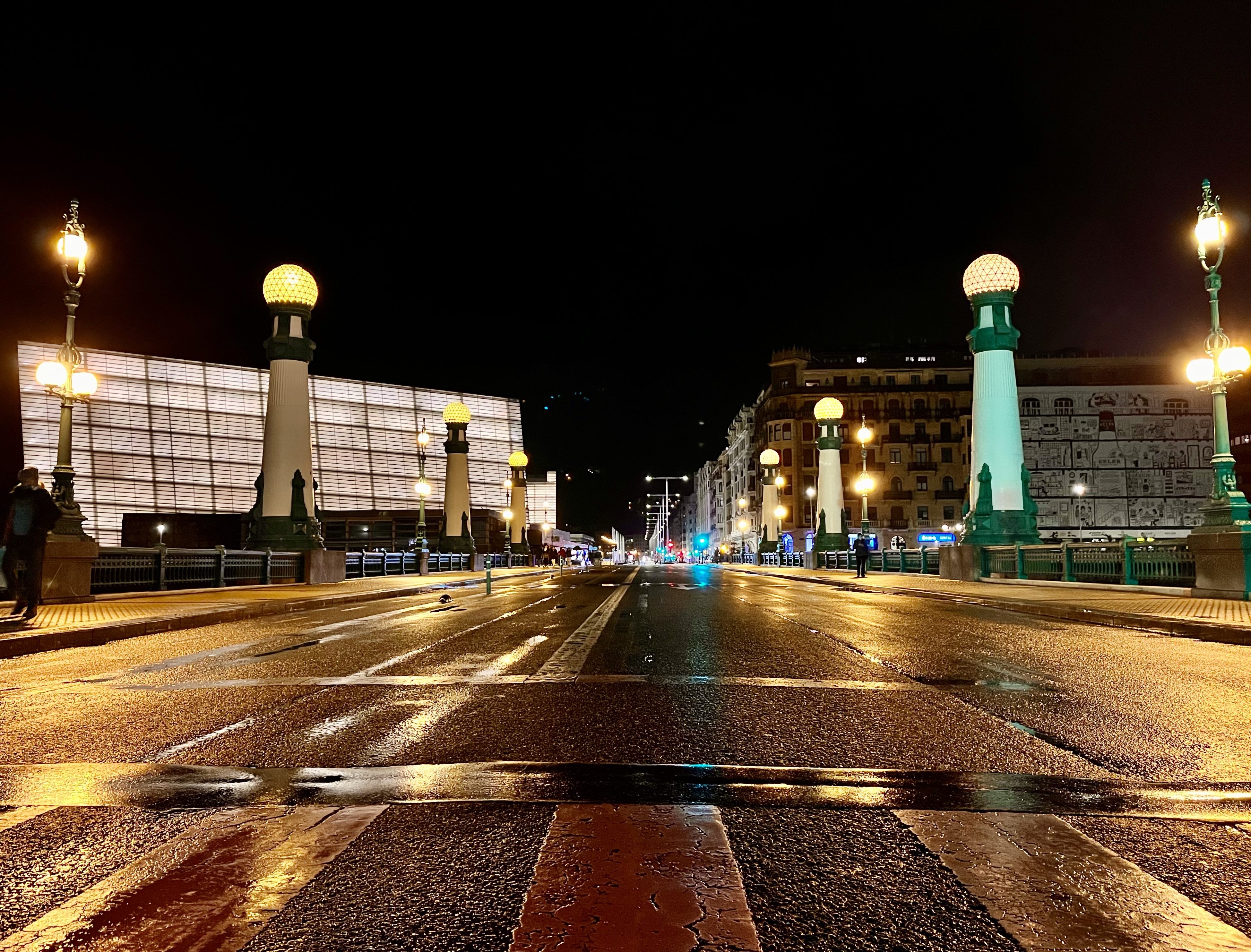 El primero de ellos tiene 101 años, tantos como las seis icónicas farolas blancas y verdes coronadas por bolas de vidrio que lo identifican. Desde él se ven las olas llegar desde el mar y fundirse con el río, bajo la presencia del monte Urgull.