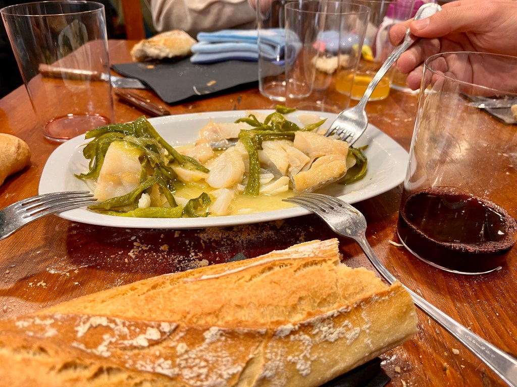 El menú de las sidrerías es el mismo para todos los comensales y es toda una institución: tortilla de bacalao, bacalao con pimientos verdes, txuletón —que no falte— al peso y, de postre, queso con membrillo y nueces. Rellena tantas veces como quieras tu vaso de sidra, y ya tienes todo lo que necesitas para ser feliz. ¿Precio? Unos 40 euros por cabeza.
