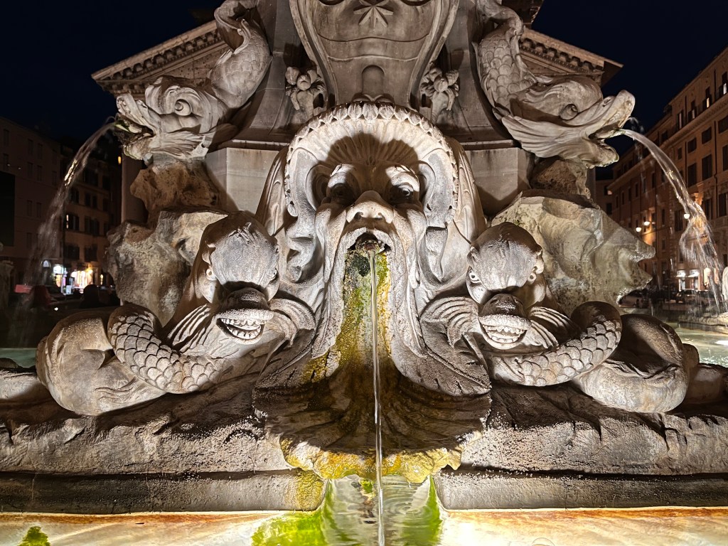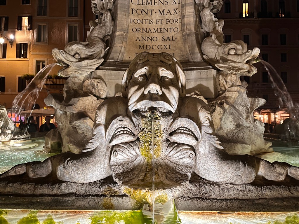 6 | Las caras pétreas más expresivas de la ciudad, en la fuente de la piazza de la Rotonda —obra de Giacomo della Porta—, frente al Panteón.
