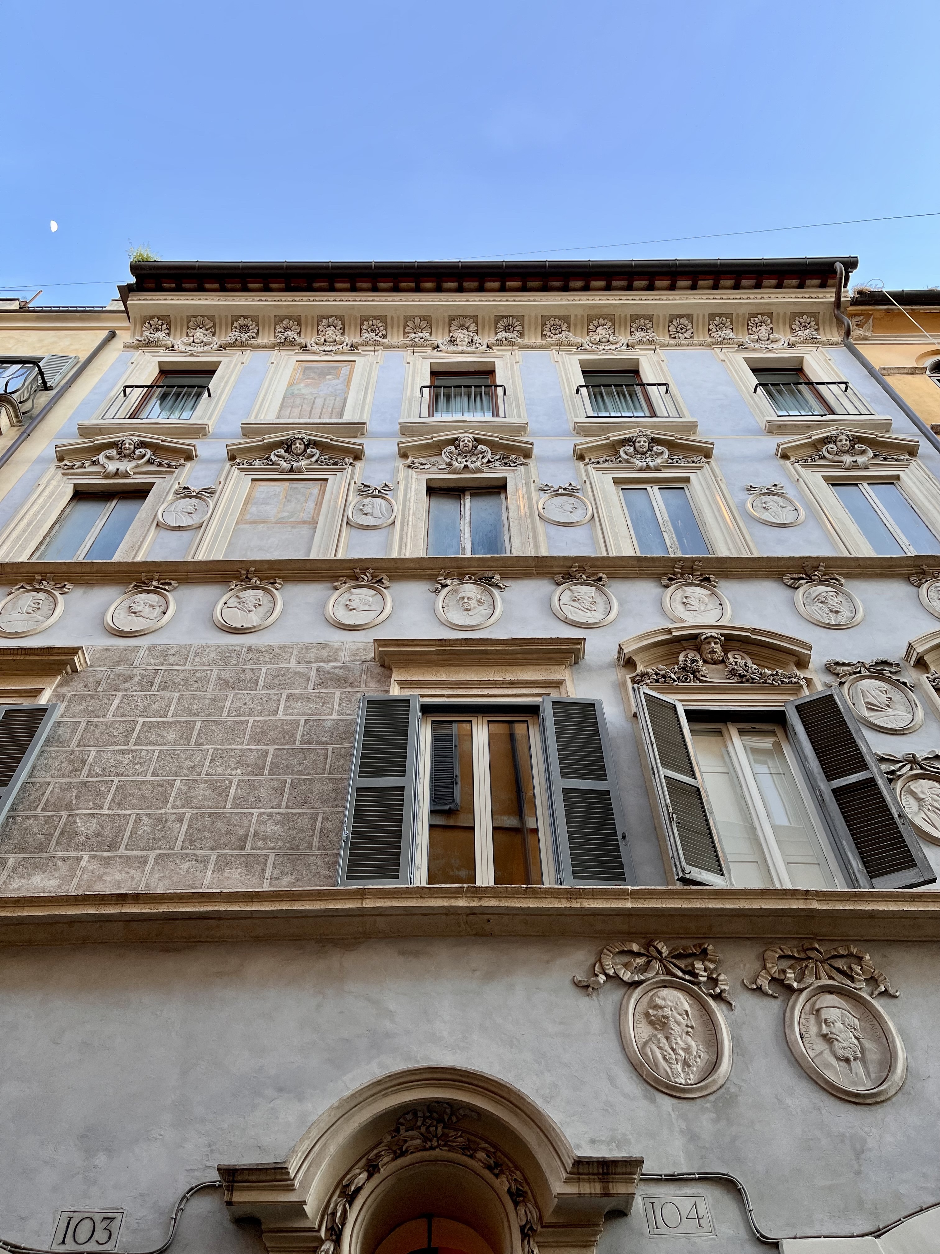 13 | La Casa di Bartolomeo de´ Dossi, en el número 103 de la via del Governo Vecchio, a tres pasos de la piazza Navona: un mosaico espectacular de medallones que representan a destacados juristas romanos de antaño.
