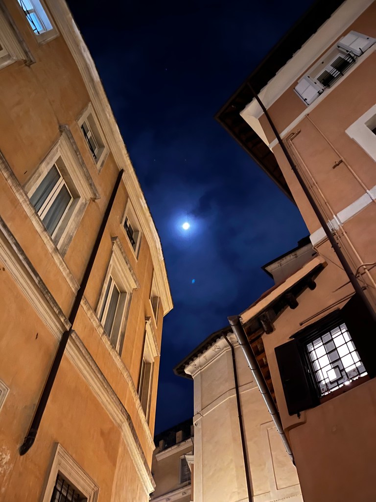 11 | Los rinconcitos y las esquinas del Ghetto —el barrio judío— de Roma bajo la luz de la luna, cubiertos por enredaderas verdes y trepadoras.