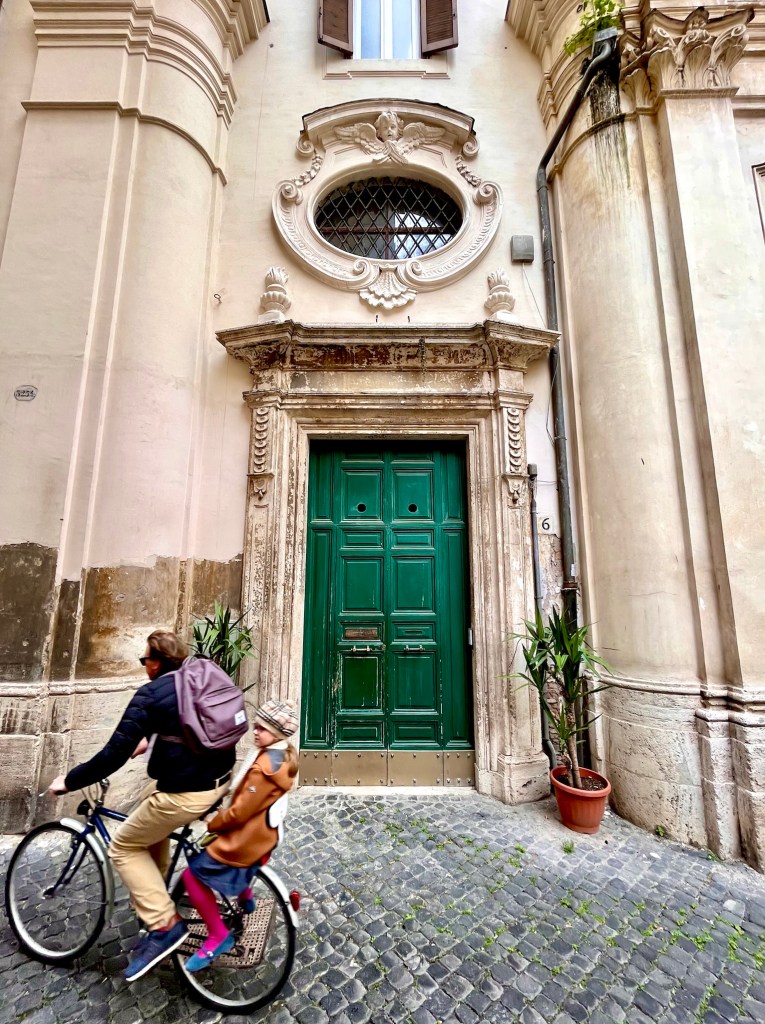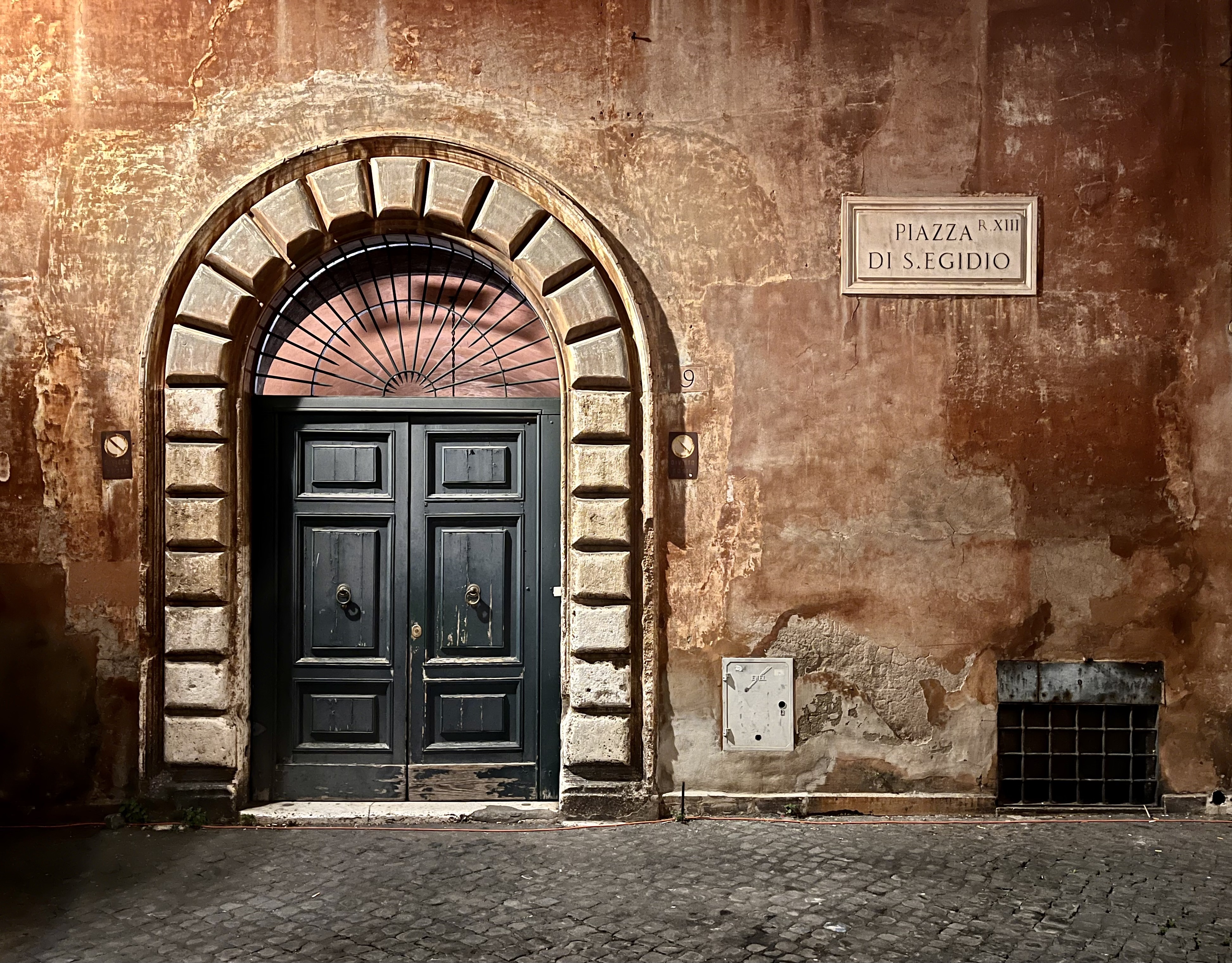 9 | El color terracota —uno de los regalos cromáticos de Roma— de la piazza de San Egidio, en el Trastévere. Omnipresentes en la ciudad y específicamente en este rincón, los tonos rojizos rodean tanto a la iglesia que le da nombre a la plaza como enmarcan al palazzo Velli, frente al templo.