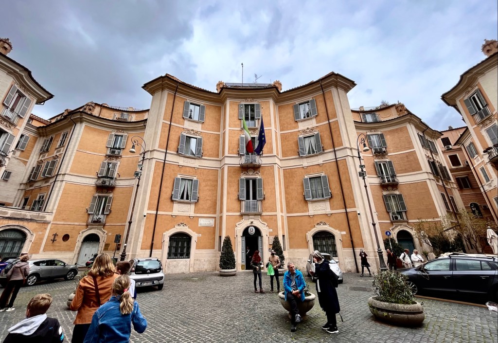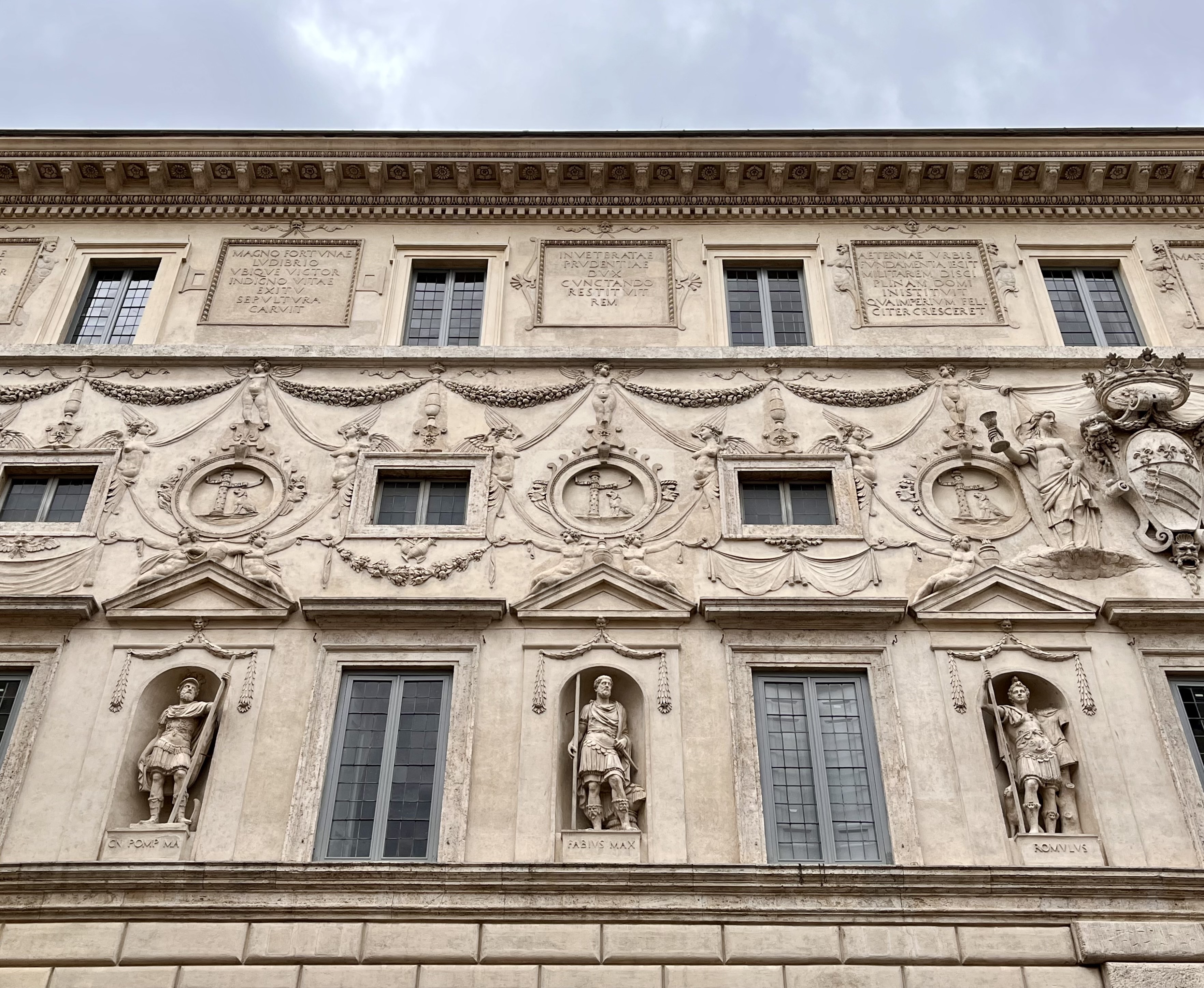 12 | La fachada del Palazzo Spada —que hoy alberga al Consejo de Estado italiano— y su espectacular colección de esculturas de antiguos emperadores romanos mirando a la calle.