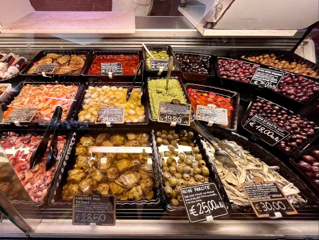 25 | Si Ghezzi es el equivalente cristiano de los paganos bazares chinos, una salumeria viene a ser el cruce entre nuestras charcuterías y una tienda de delicatessen. Un taco de Grana Padano o de Pecorino romano, una scamorza o una burrata, pesto a granel, aceitunas de todos los colores, pasta de cuantas variedades que se te puedan ocurrir, crujientes y aceitosos taralli… te apetecerá llevarte a casa la salumeria entera, como me pasó a mí con —por ejemplo— Alimentari Ruggeri (Via della pace, 29), que lleva dando alegrías desde 1935.