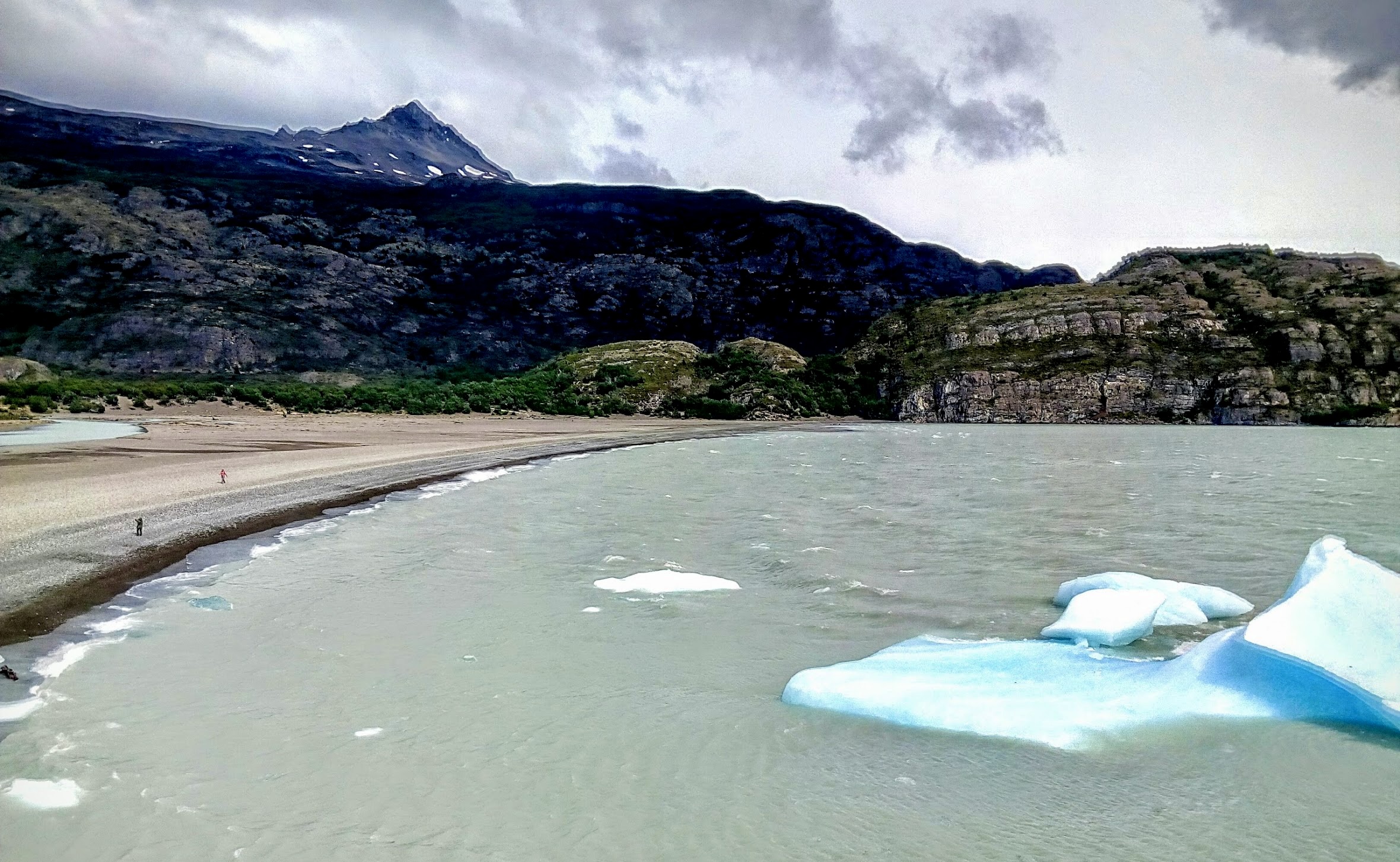 La primera parada elige una playa. De arena negra, larga, anchísima y ventosa, el agua del lago Grey la peina constantemente con unos invitados también siempre presentes: los témpanos de hielo que se desprenden del glaciar que lleva el mismo nombre.