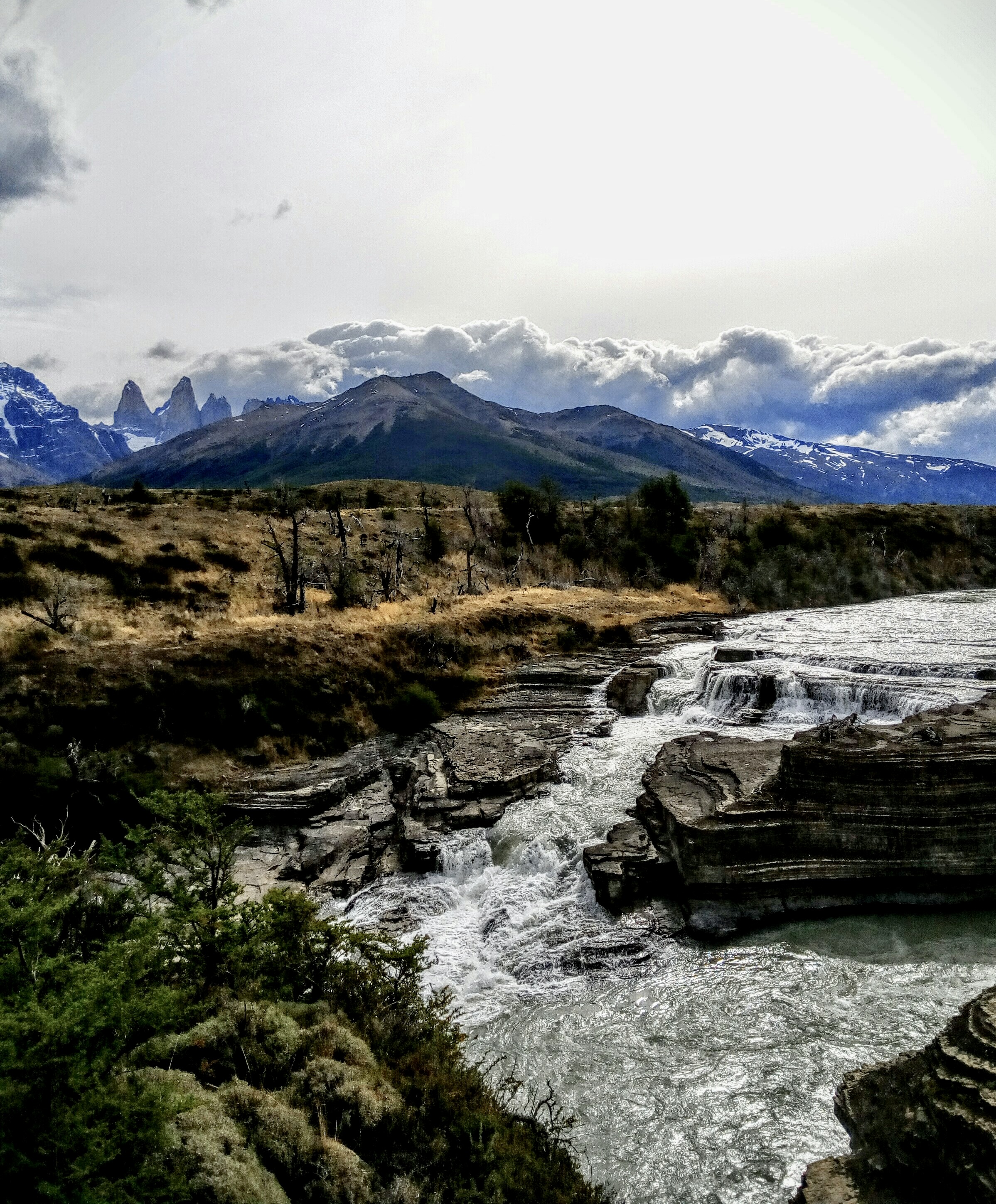 La cascada del río Paine no es quizás el más azul de los elementos del lugar, pero sí uno de los escenarios desde donde, sin necesidad de acercarse en exceso, se pueden divisar mejor los tres famosos promontorios que nos ocupan. Juntos, desafían a la gravedad más que ninguna otra forma de las que conviven en el parque, como una peineta triple clavada sobre el Chile más extremo.