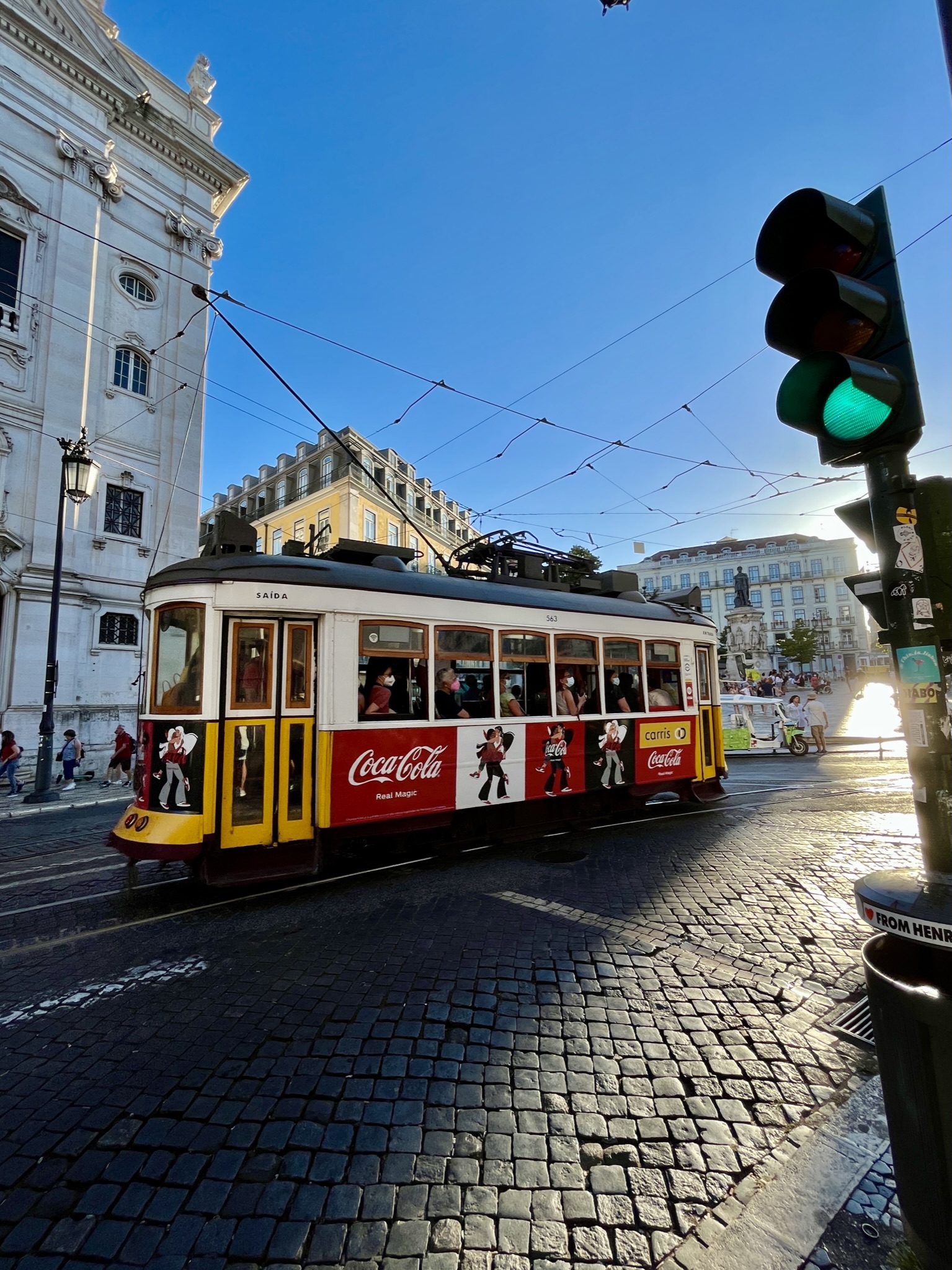 No hay más que mirar al cielo azul del centro de Lisboa, mientras se callejea por sus aceras empedradas —en Alfama o en el Chiado, en la Baixa o en el Bairro Alto— para reiterarse en la magia del tranvía y sus caminos. Suspendida como una maraña de hilos viajeros y una invitación a volar, la red de cables del tranvía lisboeta dibuja las rutas eléctricas que los carros recorrerán, conectando y dándole forma a esta urbe luminosa y querida por —ojalá, y si no hay terremoto que lo impida— muchos más siglos. 🟡