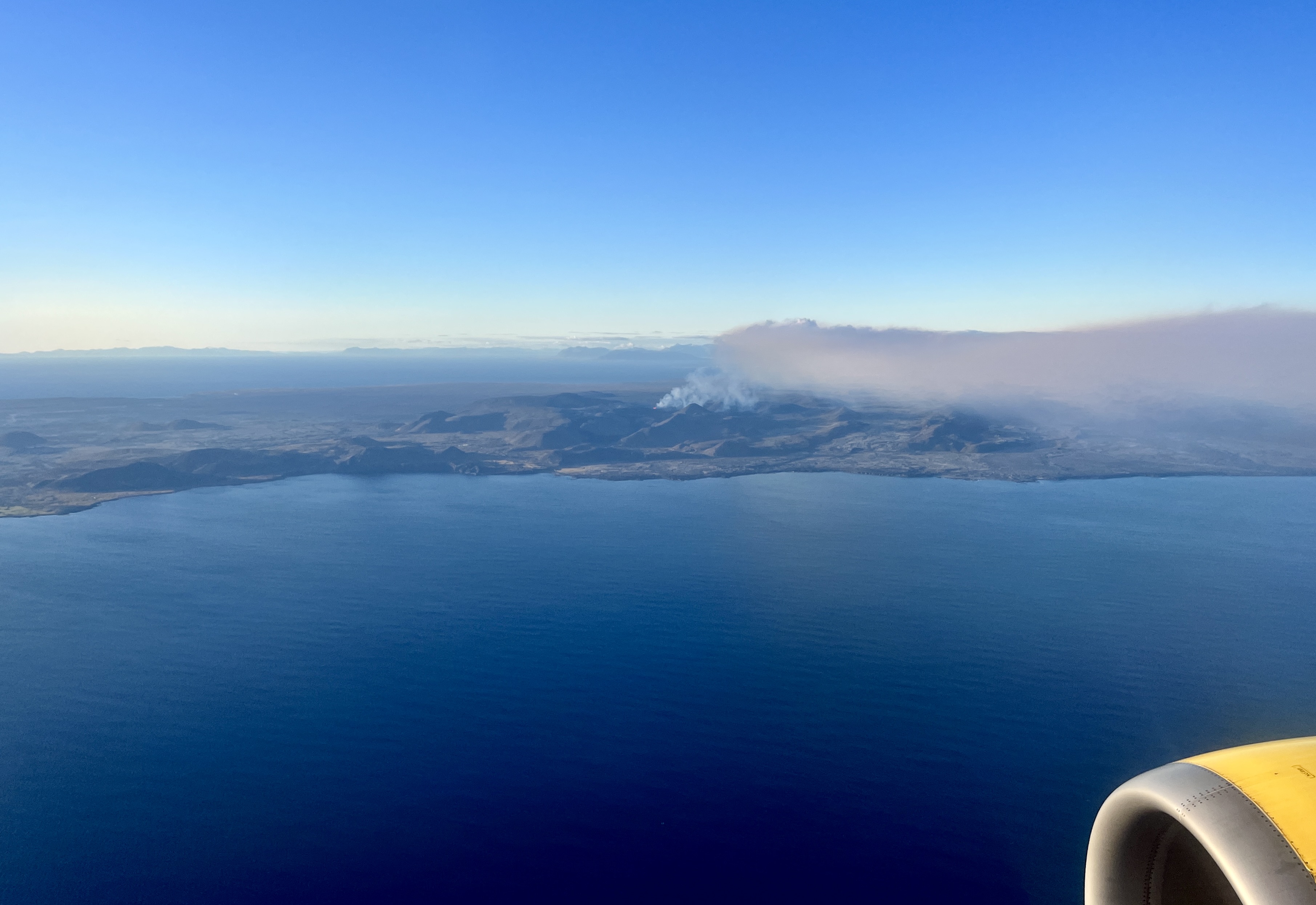 El pasado verano llegó la ocasión de escudriñar la porción de tierra que más ganas he tenido nunca de conocer: Islandia. Y sobrevolando ese país helado y salvaje, antes de poner un pie en él, la naturaleza nos brindó una clase de geología en directo. La erupción del Fagradalsfjall nos pilló en el momento y el lugar exactos, y el avistamiento privilegiado de sus destellos humeantes —e inofensivos— fueron el preludio perfecto de un viaje imborrable.