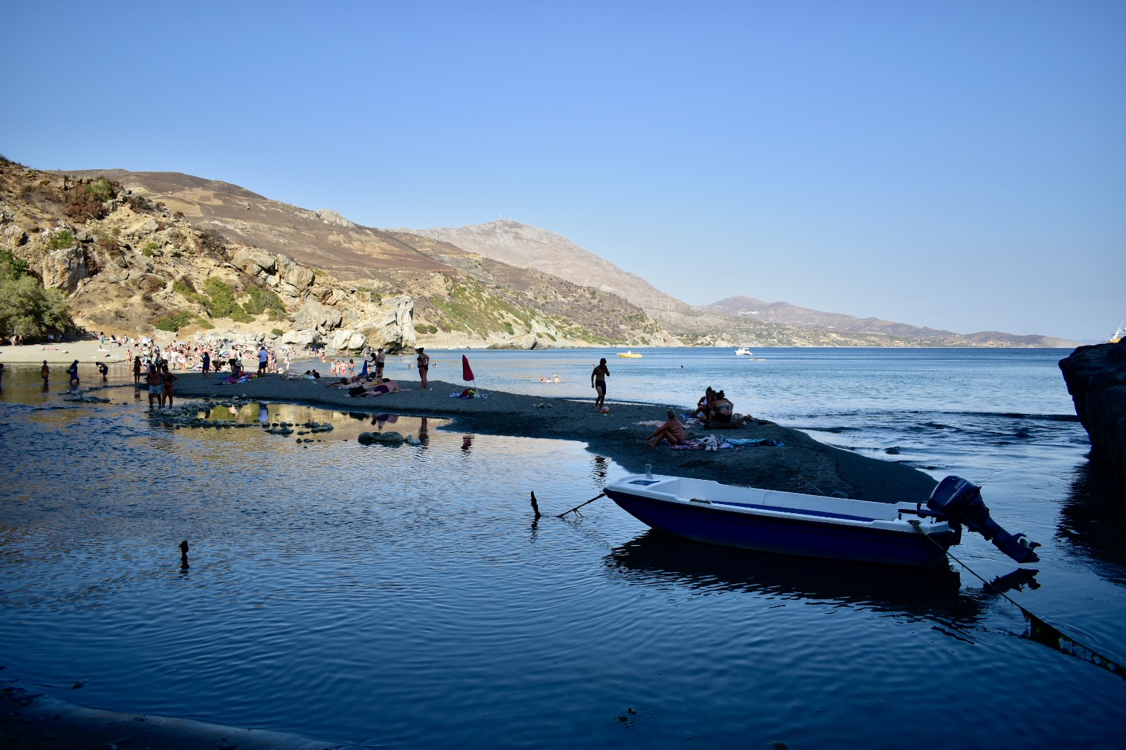 Resuelta la cuestión gastronómica, lo prioritario será encontrar un hueco óptimo para plantar el campamento que se lleve a cuestas. Y, por óptimo, sobre todo si es verano, interprétese un lugar resguardado de los dos enemigos cretenses predilectos de cualquier visitante: el viento —por ratos, insufrible— y el sol —directamente, en pleno agosto, aniquilador—.