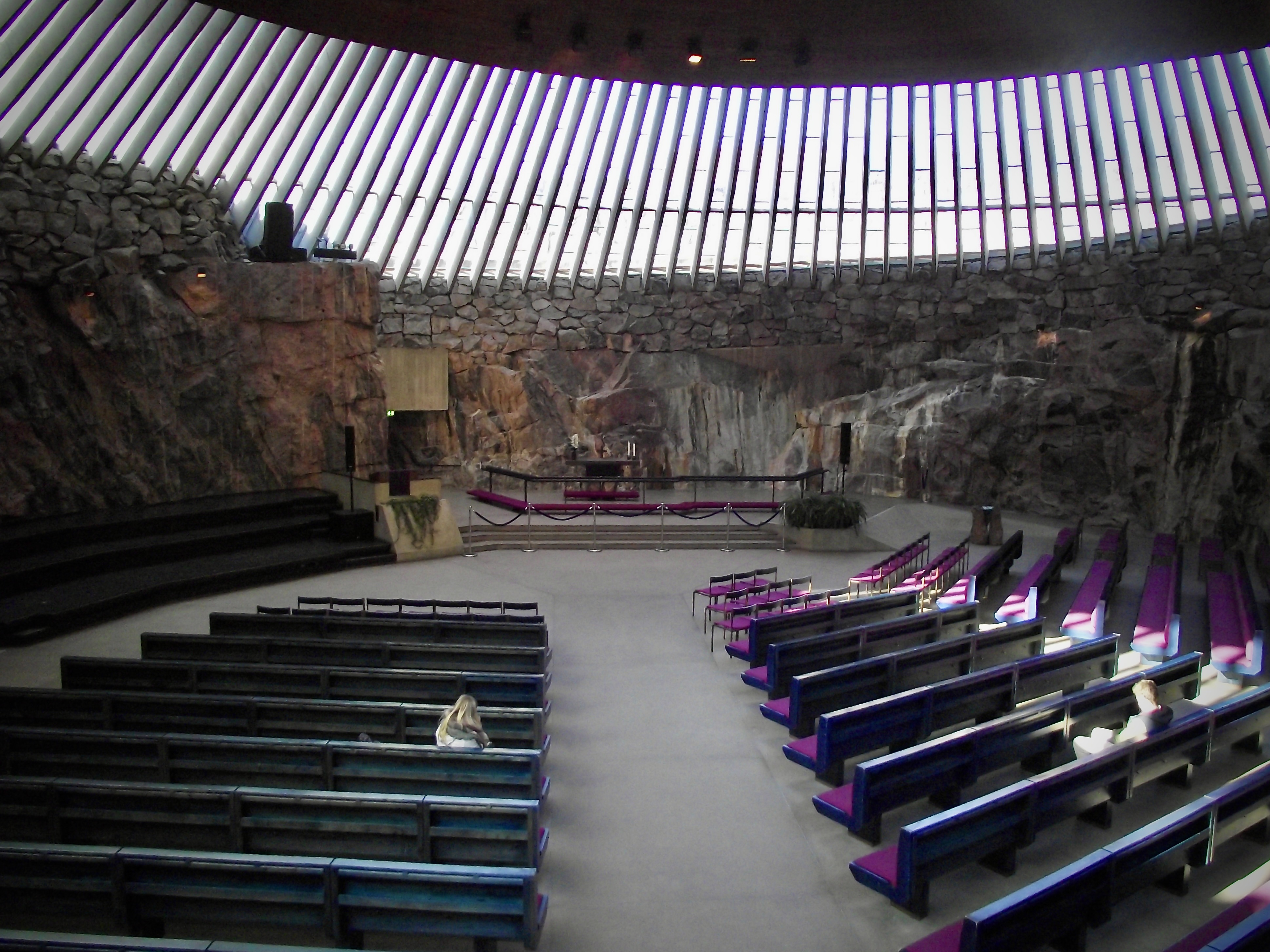 ¿Es un ovni clavado en un parque? ¿Es un almacén de residuos nucleares? Desde fuera, la iglesia de Temppeliauikio, en pleno centro de Helsinki, puede parecer muchas cosas menos un templo. No era la idea original de sus propulsores, que consistía en erigir, en la década de 1930, una iglesia luterana de apariencia tradicional. Sin embargo, la Segunda Guerra Mundial dinamitó los planes previstos y, en 1969 el proyecto vencedor —de los hermanos Timo y Tuomo Suomalainen— acabó dando pie a un edificio totalmente rompedor. El resultado, una iglesia cavada en la roca, con una cúpula que deja colarse la luz natural y una acústica fantástica —dicen—, y lo que hoy es uno de los hitos turísticos de Finlandia.