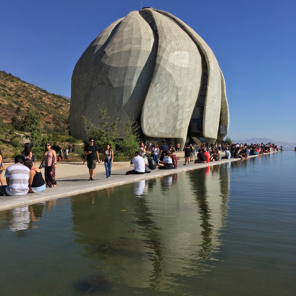 En todo el mundo, hay ocho templos continentales de adoración Bahá’í, culto surgido en Irán en el siglo XIX: en Samoa, Uganda, Panamá, Alemania, India, Australia, Estados Unidos… y Chile. Este último es el más joven de los ocho, y su construcción —terminada en 2016— coincidió con la época en que viví en Santiago. Es un edificio hipnótico que recuerda a una flor aún por abrirse, y que —como el resto de templos de esta religión— tiene el número de lados considerado perfecto por los bahaí: nueve. Perfecto es también su emplazamiento, a los pies de los imponentes Andes, desde donde se vislumbra una perspectiva de la capital chilena inmejorable.